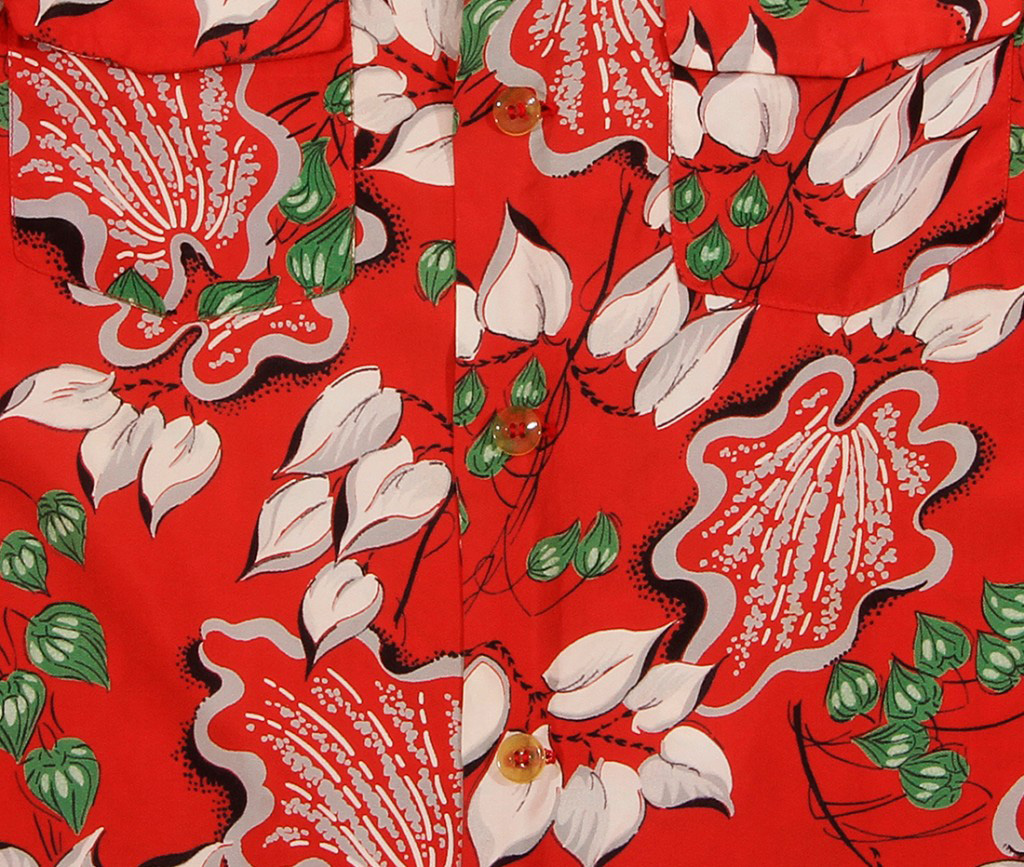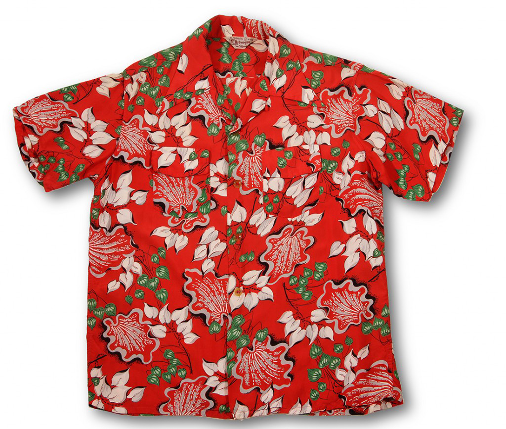 This short-sleeved aloha shirt by Artvogue is a tangle of vines and large red leaves. The vines, dotted with small green and white leaves, wrap around this bright red shirt. The busyness of the pattern creates a festive design that works in both casual and professional settings.