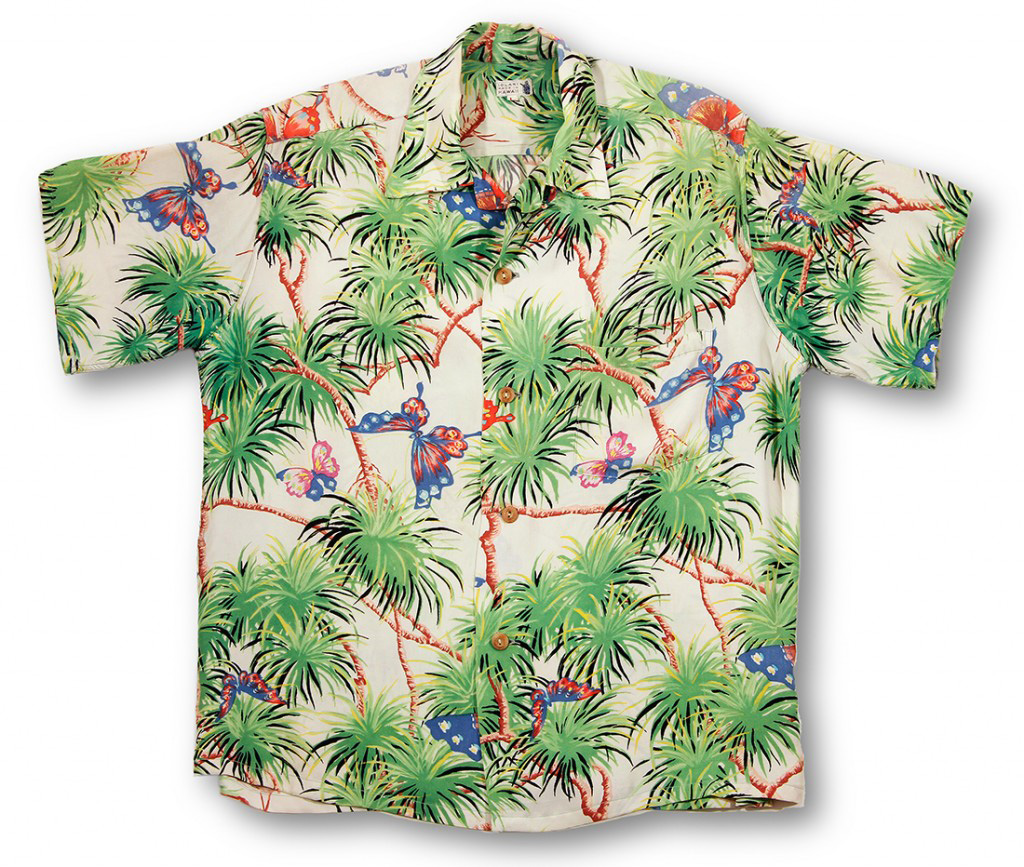 Multi colored butterflies fly between hala tree branches in an unusual one way hand painted design from Japan. Share this: Facebook X Email