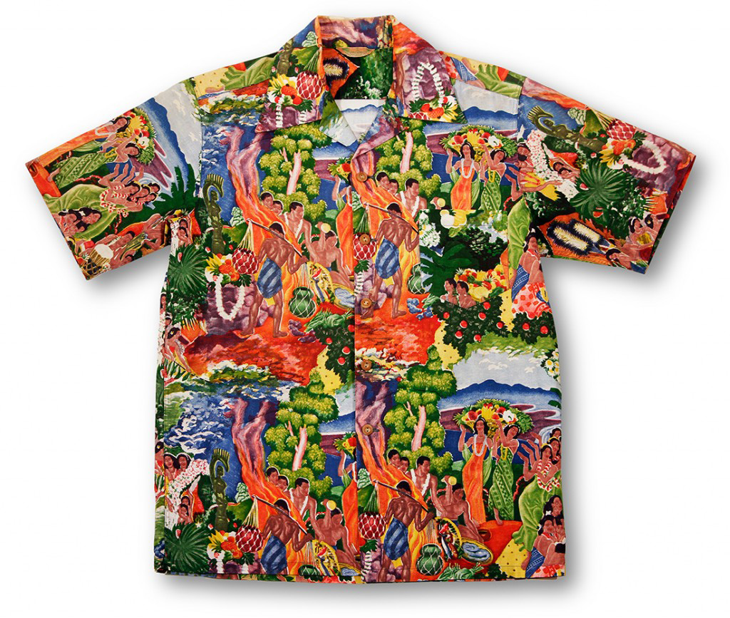 In 1950, Bill Foster Sr. of the Mallinson Company and textile designer John “Keoni” Meigs assisted the Kamehameha Garment Company in converting Savage’s art into a successful textile design. The Mallinson company produced a seven color reproduction of Savage’s painting, “Island Feast”, producing a timeless, stunning and innovative design.