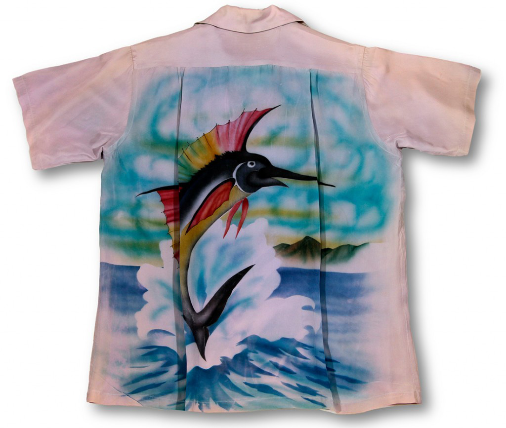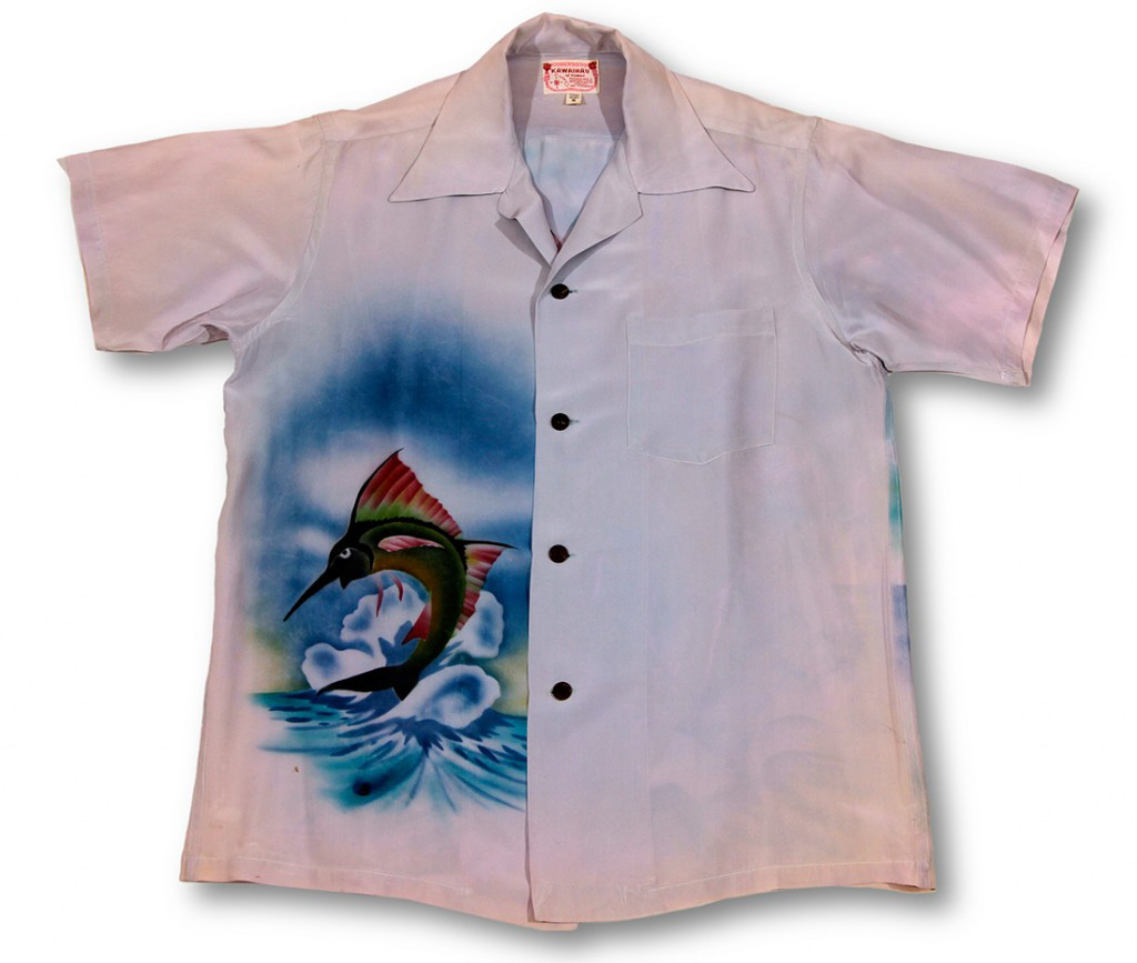 Kawaihau airbrushed and hand-painted a series of island lifestyle scenes in the 1950’s. These shirts are much more rare than shirts with traditionally printed textiles.