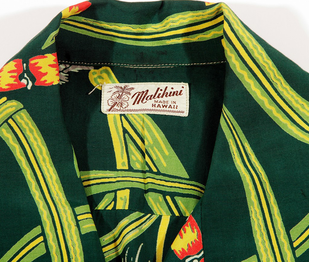 The first commercial sugarcane plantation was stared at Koloa, Kauai in 1835, known as the “Old Sugar Mill”. Sugar made a big contribution to the economy in the Hawaiian Islands and in the 1940s and 50s, and also offered inspiration for beautiful textile designs and Aloha Shirts. With the bamboo-like cane stalks, sugar cane tops and the tassels, the artist created an balanced two-way realistic design. Avocado greens and sunny yellow with a pele orange red combine together with a soft grey to create an incredibly beautiful shirt.