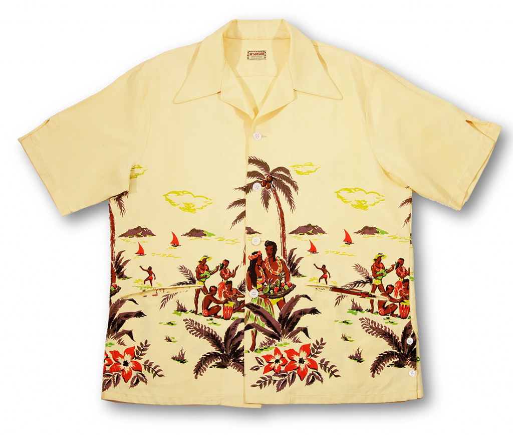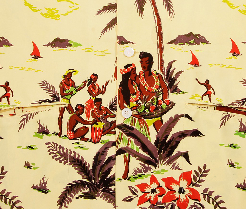 A mainland company captures the enchantment of the Pacific islands. Men and women wear colorful lei holding a calabash of fresh fruits, musicians with flowers in their ears, play ukulele and beat the drum as a hula girl sways to their melody.