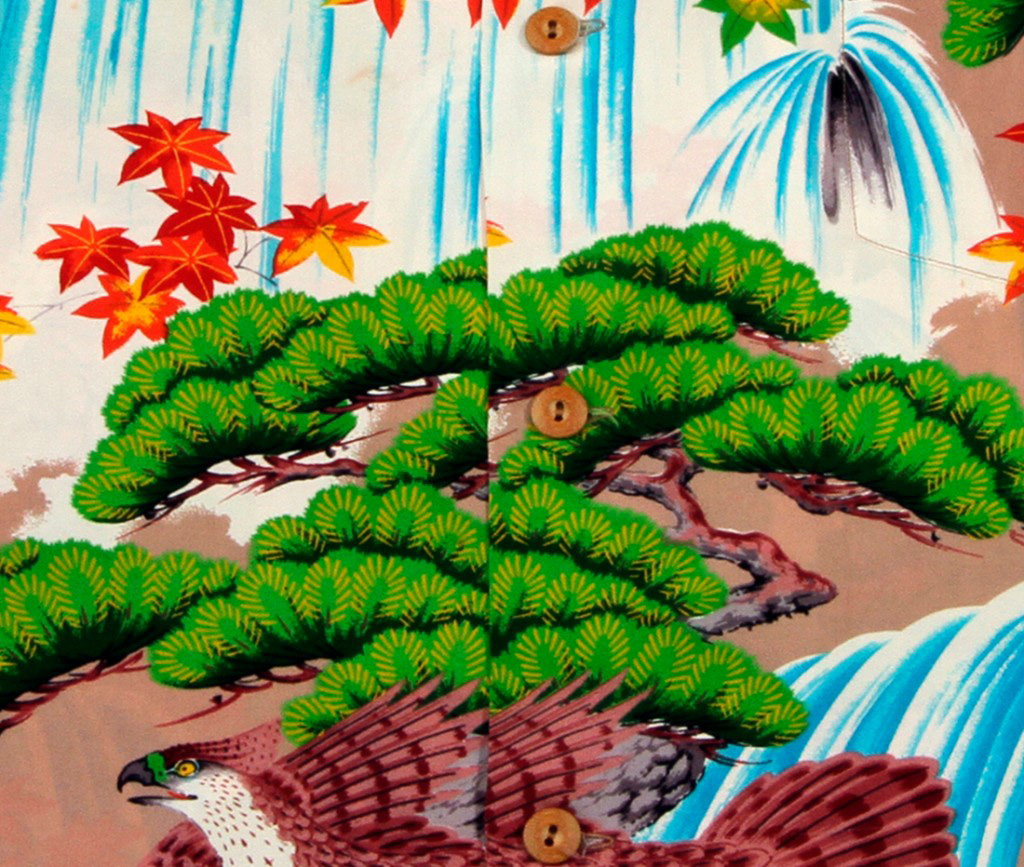 There’s an old Japanese proverb that says, “No aru taka wa tume okasuku,” which means, “A wise hawk hides its talents.” The hawk represents the spirit of humility despite skills and talents. This hawk is perched on the limb of a tree near a gushing waterfall. Red and gold maple leaves flutter toward the ground, signaling the start of autumn.
