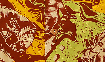 This label reads, "Made in Honolulu for Desmond's Southern California" depicting a great two-man outrigger sailing canoe moving across calm waters. Desmond's also had another woven label with a palm tree and the words, "Leisure Shirt".