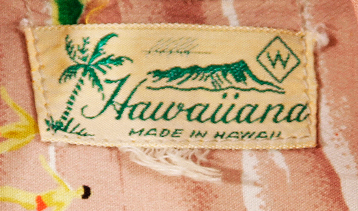 It is our belief that the label Hawaiiana was a label owned by Wah Cho Lock, the owner of the prestigious sportswear company Hale Hawaii. It was common for manufacturers to have various label names to use for different customers. This enabled each label name to have its own level of integrity in the competitive marketplace.
